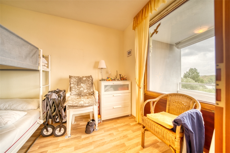 Das Apartment befindet sich in einer gepflegten Anlage und bietet auf 45 m² Platz für zwei Erwachsene und zwei Kinder. Der Schlafbereich für die Kinder ist mit einer Tür abgetrennt und hat ein Fenster mit Blick auf den Binnensee. Im Außenbereich haben Sie eine große, Markise, sollte es einmal zu warm werden.